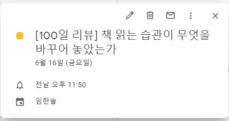 내가 책을 읽기 시작한지 얼마나 되었나 돌아봤다. 6월 16일이 100일째 되는 날이다.
