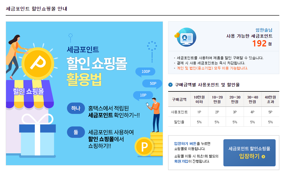 - 세금포인트 할인 쇼핑몰 (개인·법인 이용 가능)