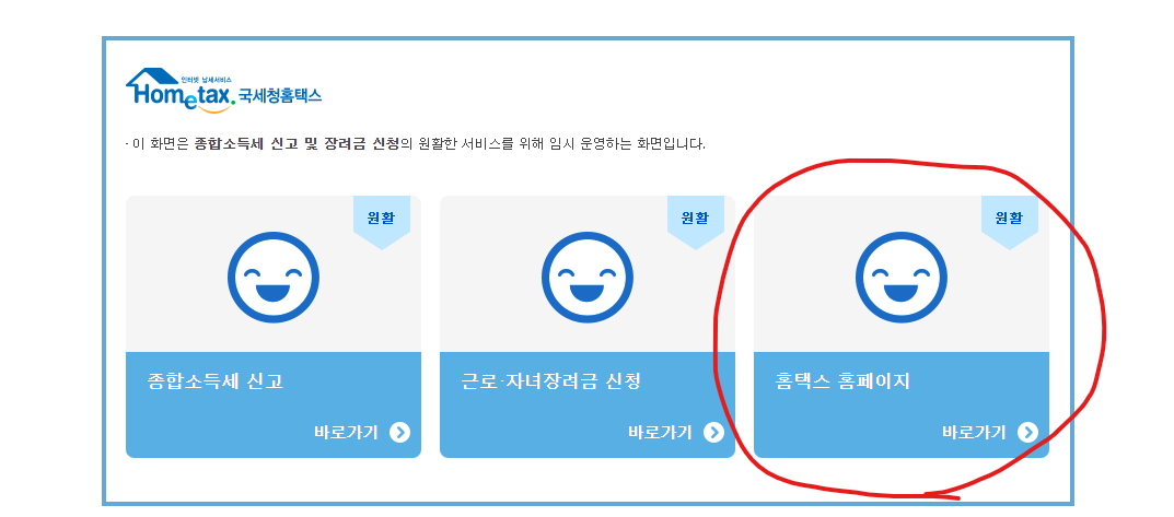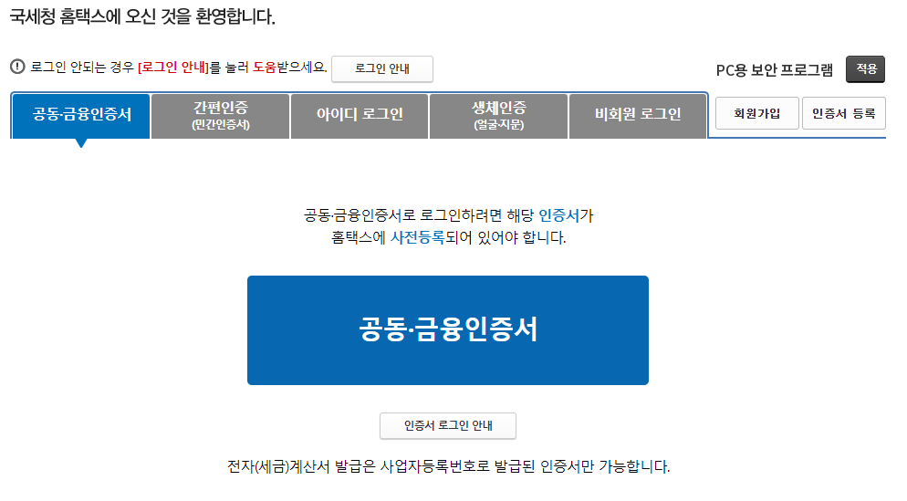 쇼핑몰에서는 직접 로그인할 수 없으니 홈택스 로그인을 먼저 해야한다.
