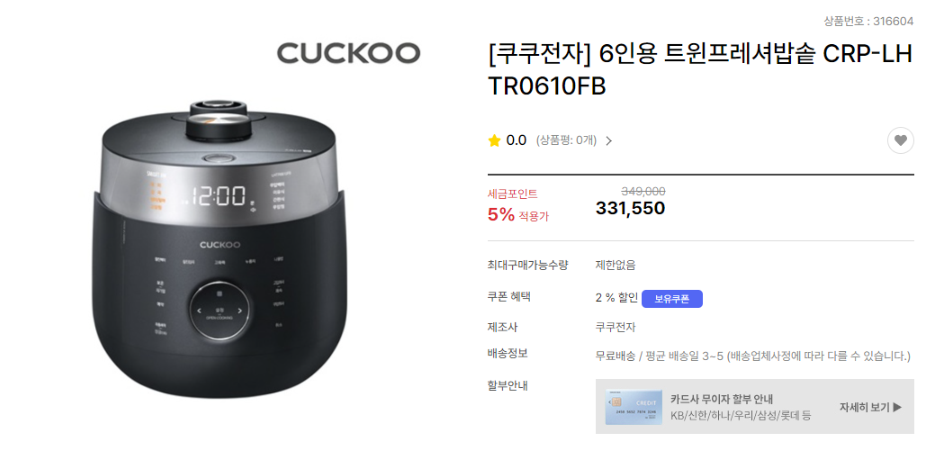 5% 적용가가 저정도고 2% 쿠폰까지 쓰면 할인율이 더 올라간다.