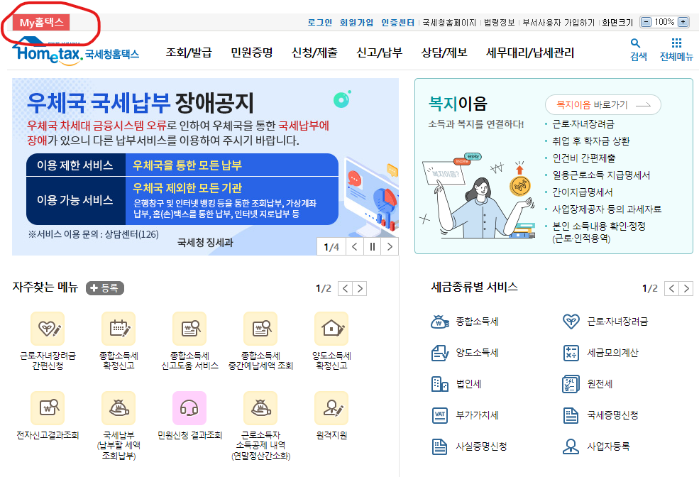 에서 로그인하면 바로 확인할 수 있었다. (로그인시키려고 일부러 My홈택스로 안내했으니 괜히 복잡하게 온건 아니다ㅎ)