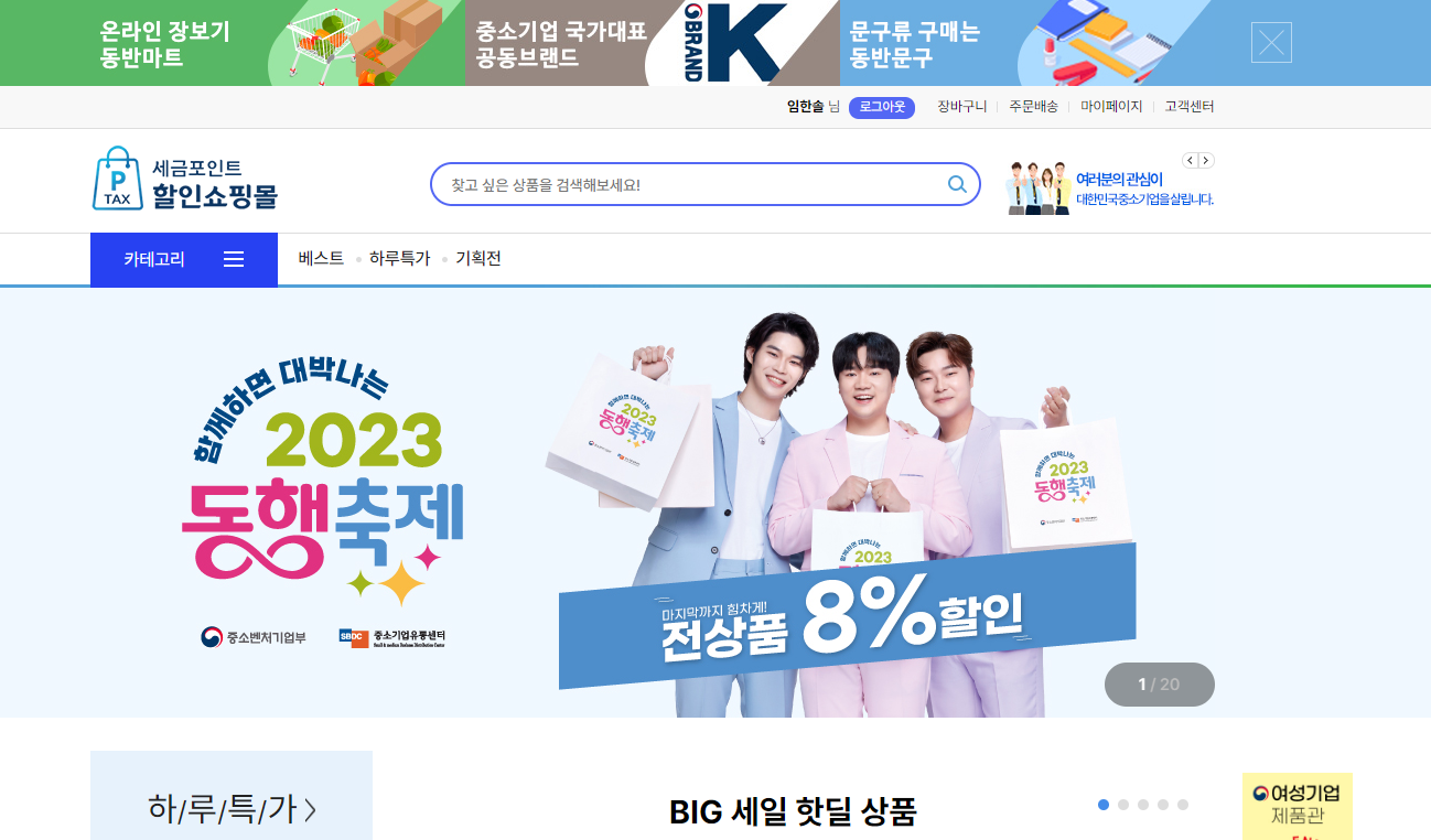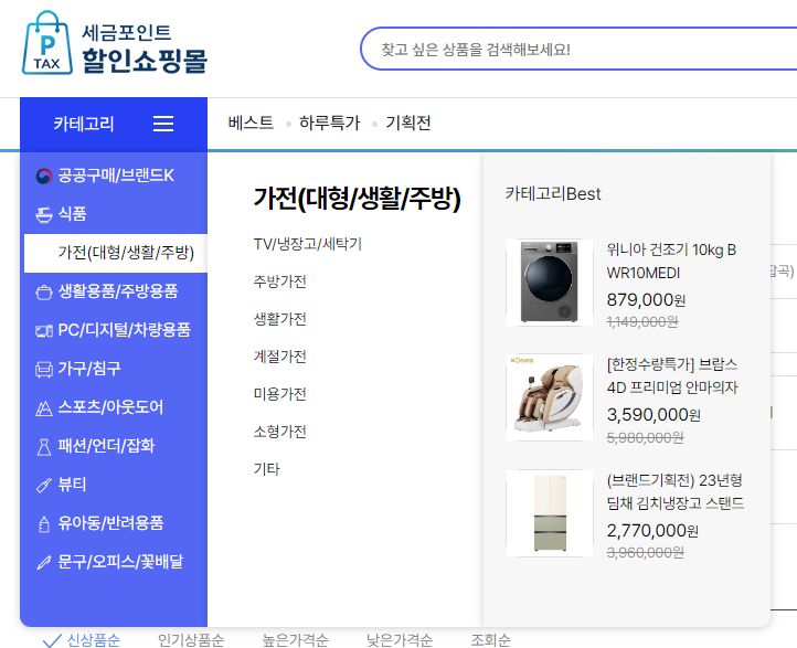 여기서 내가 오늘 사용한건 세금포인트 할인 쇼핑몰이다.