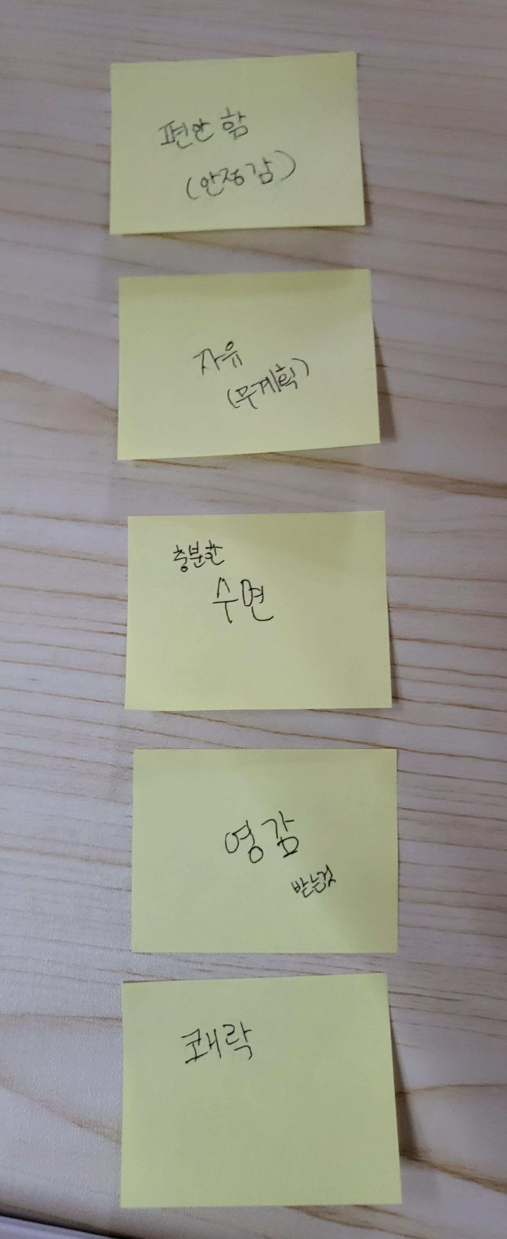 여기서 얼렁뚱땅 넘어가면 다음장부터 힘들어질 것 같아서 내가 인생에 가지고 있는 가치들을 한번 자세히 분석해보았다.